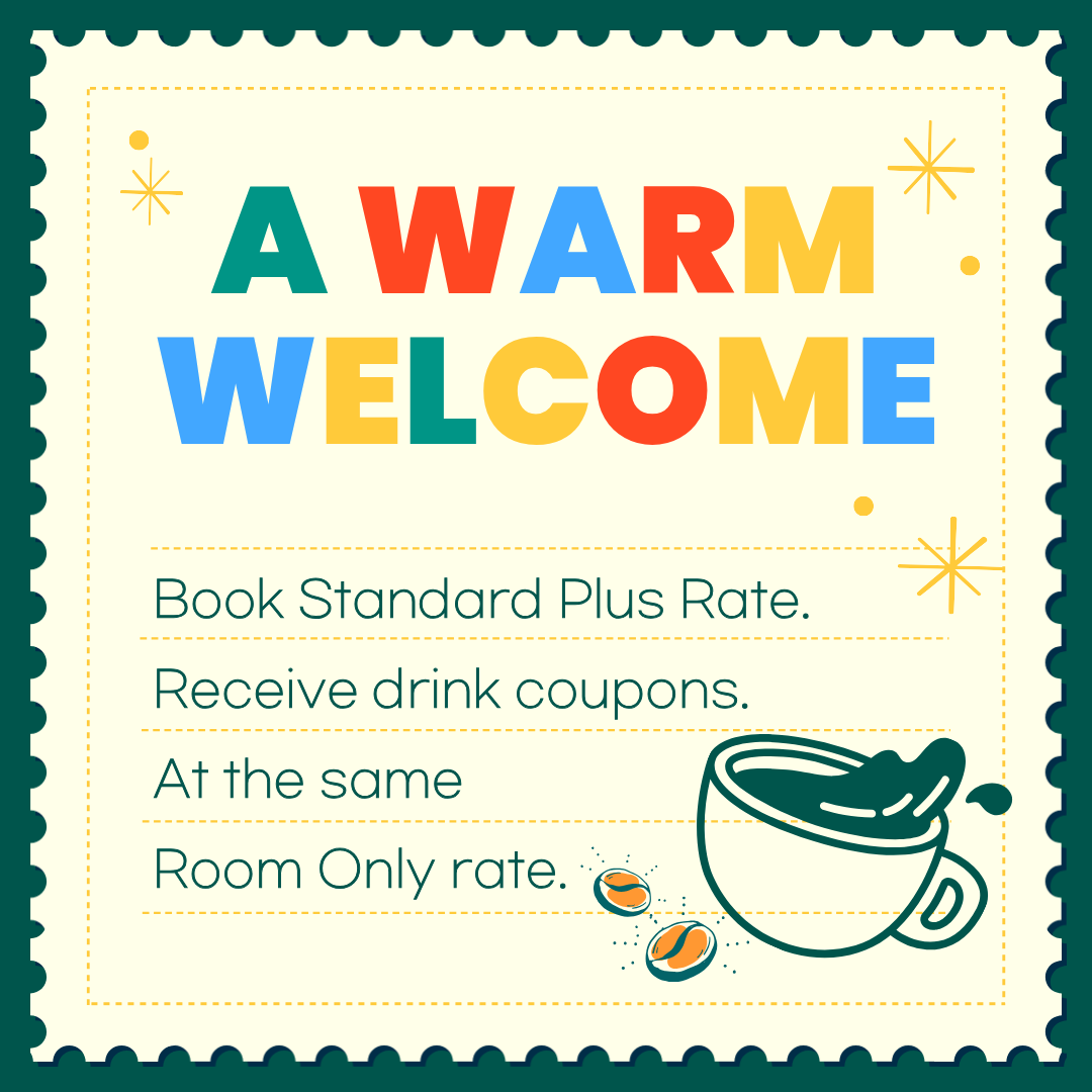 Stay at the same room rate! Welcome drink included